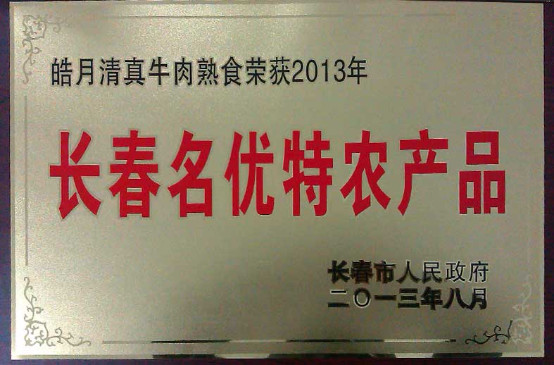 皓月清真牛肉熟食榮獲2013年長春名優特農產品