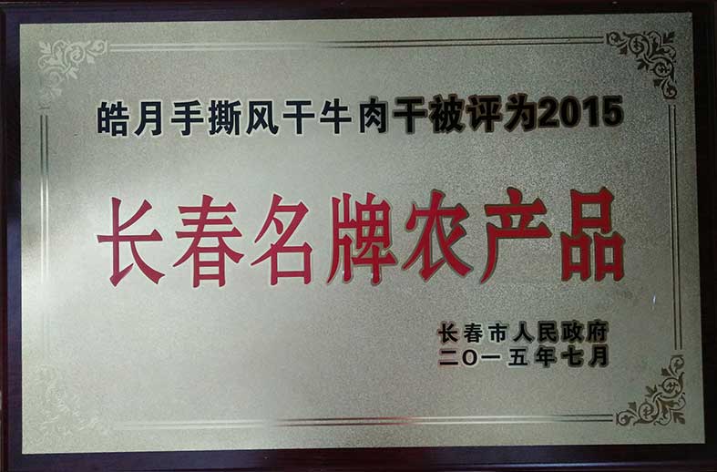 皓月手撕風干牛肉干被評為2015長春名牌農產品